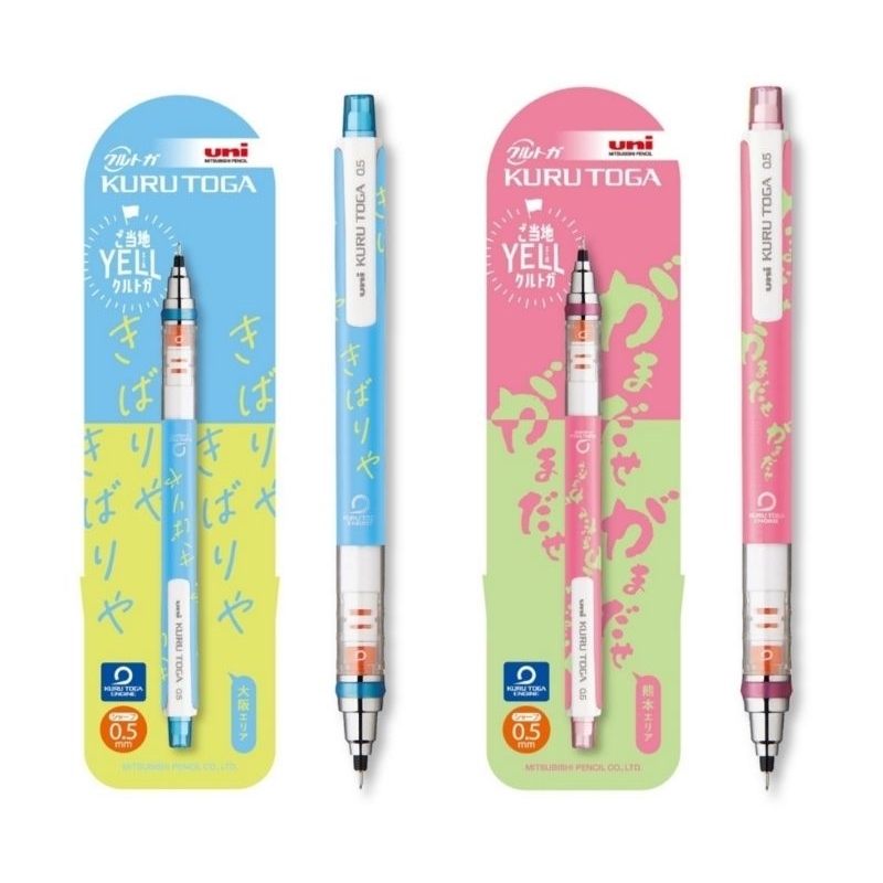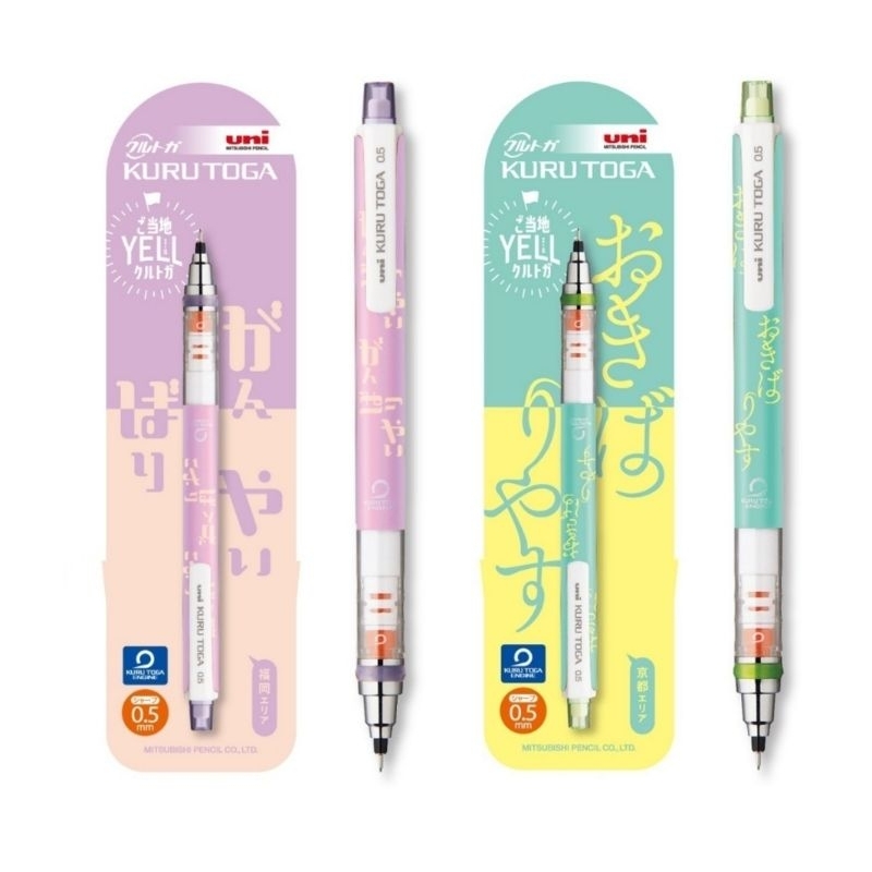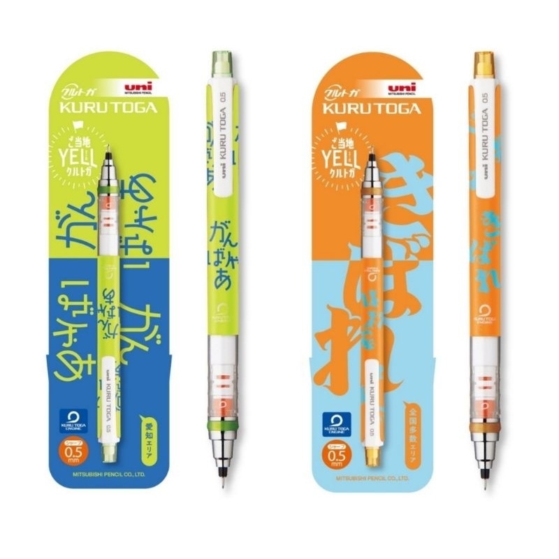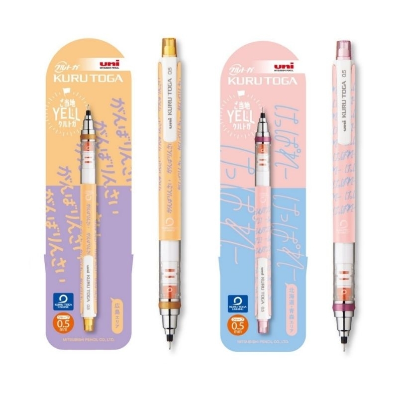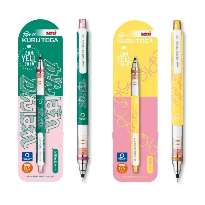 ดินสอกด Kuru Toga “YELL” Limited ที่มาในธีม “ให้กำลังใจ” ที่ตัวด้ามจะมีคำว่า “สู้ๆ”เป็นภาษาถิ่นจากทั่วภูมิภาคญี่ปุ่น ที่พร้อมมาให้เลือกหวีดกันถึง 12 สี ไม่ซ้ำแบบ แมชต์คู่สีได้อย่างลงตัวมากๆ