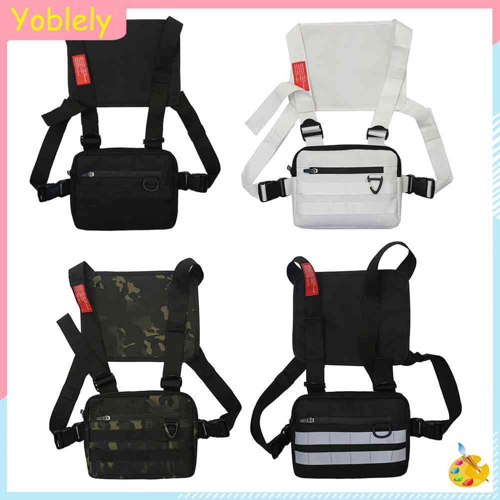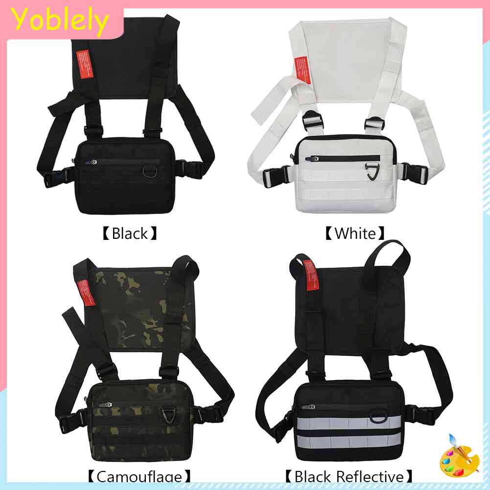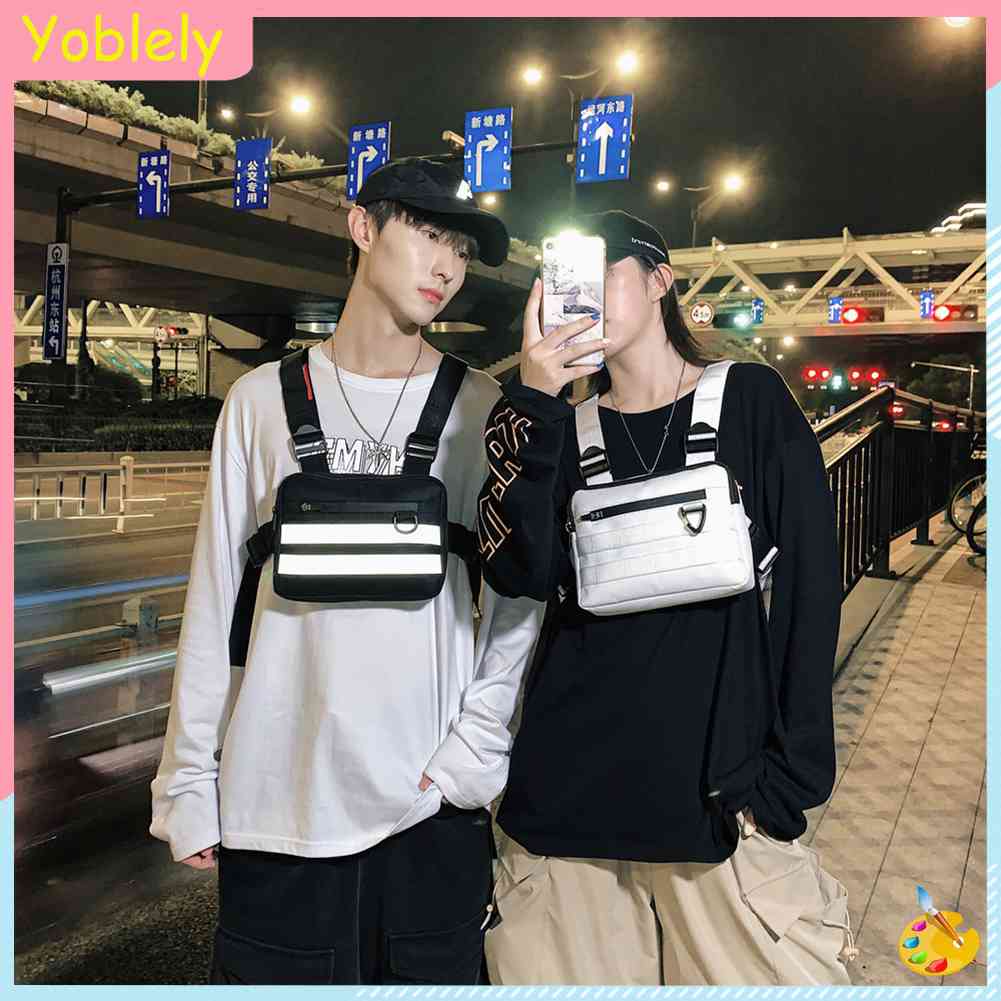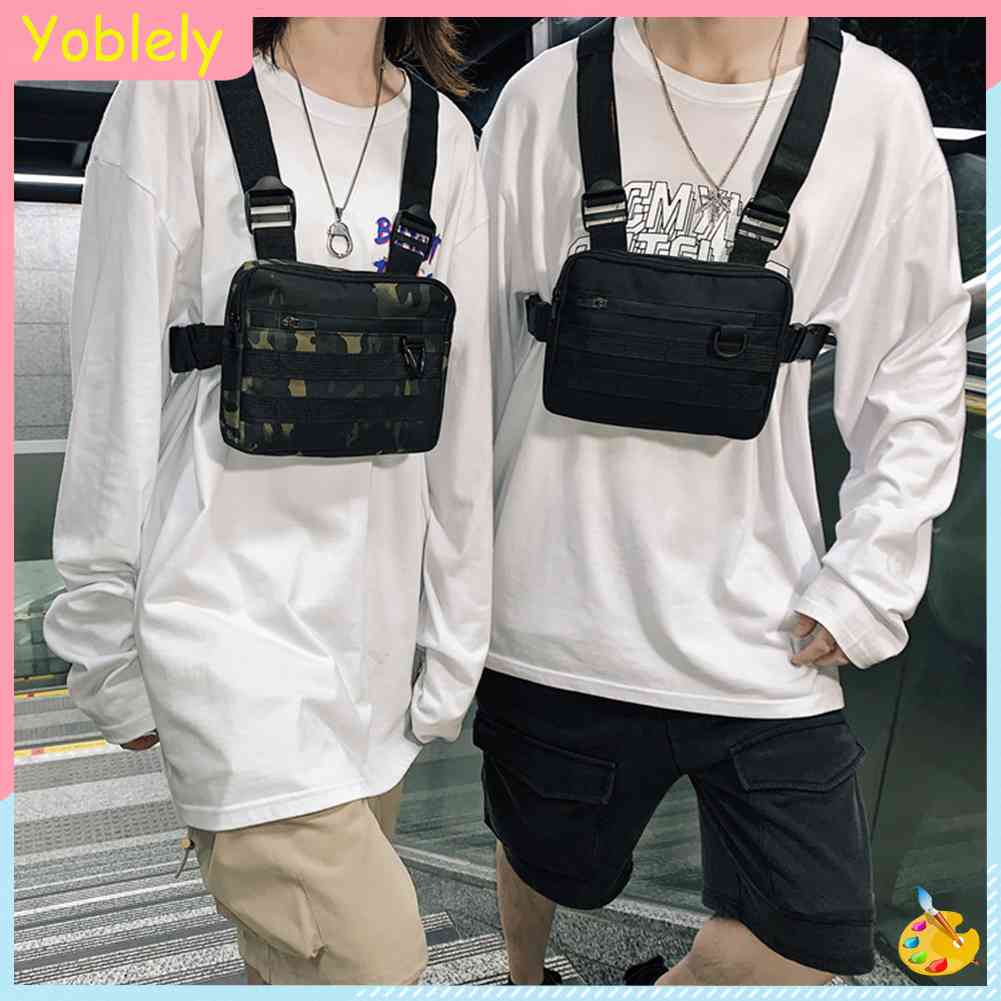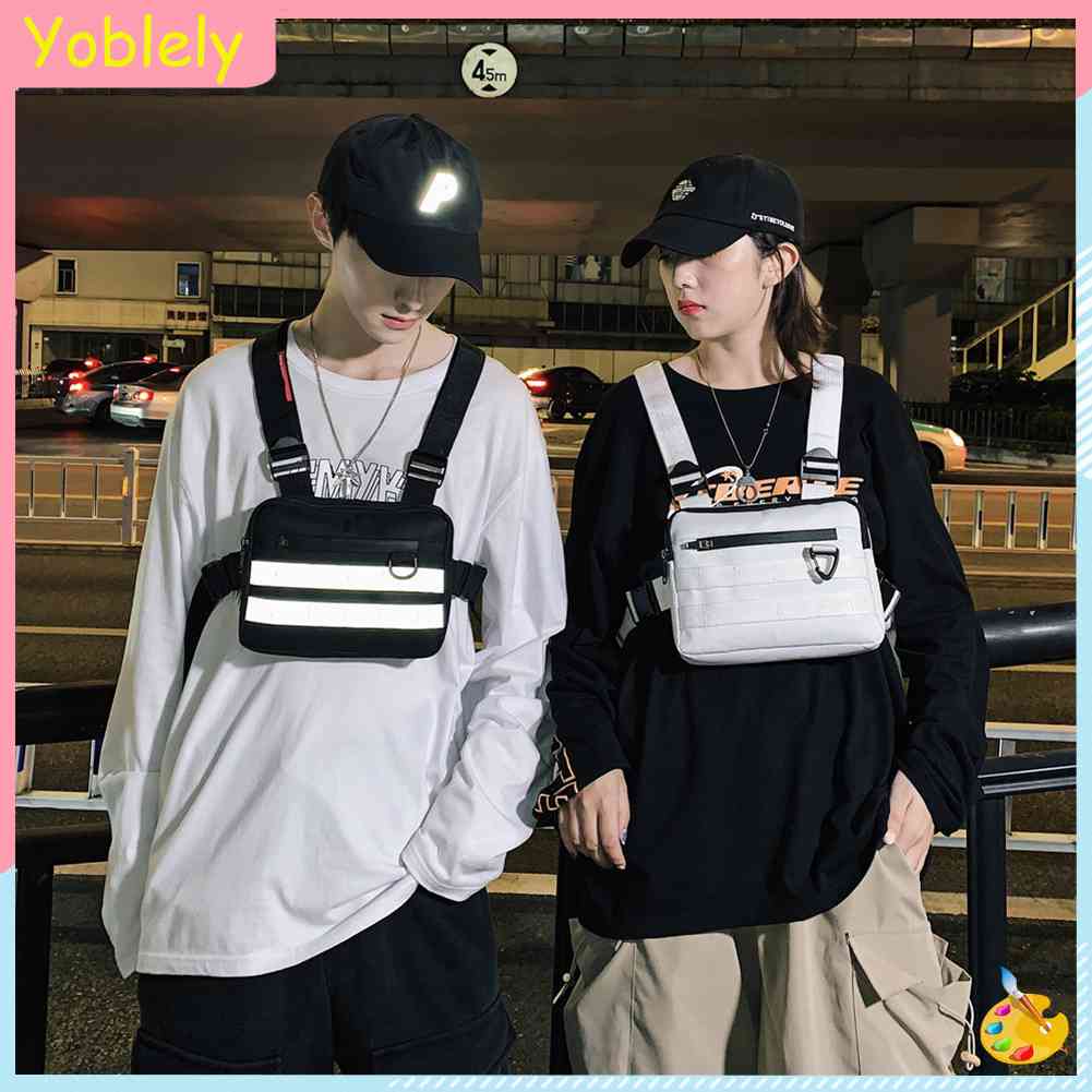 เสื้อกล้ามมัลติฟังก์ชั่นหน้าอกกระเป๋าสะพายผู้ชายผู้หญิงผ้า Oxford แฟชั่นเสื้อคลุมฮิปฮอปสตรีทกระเป๋าเข็มขัด