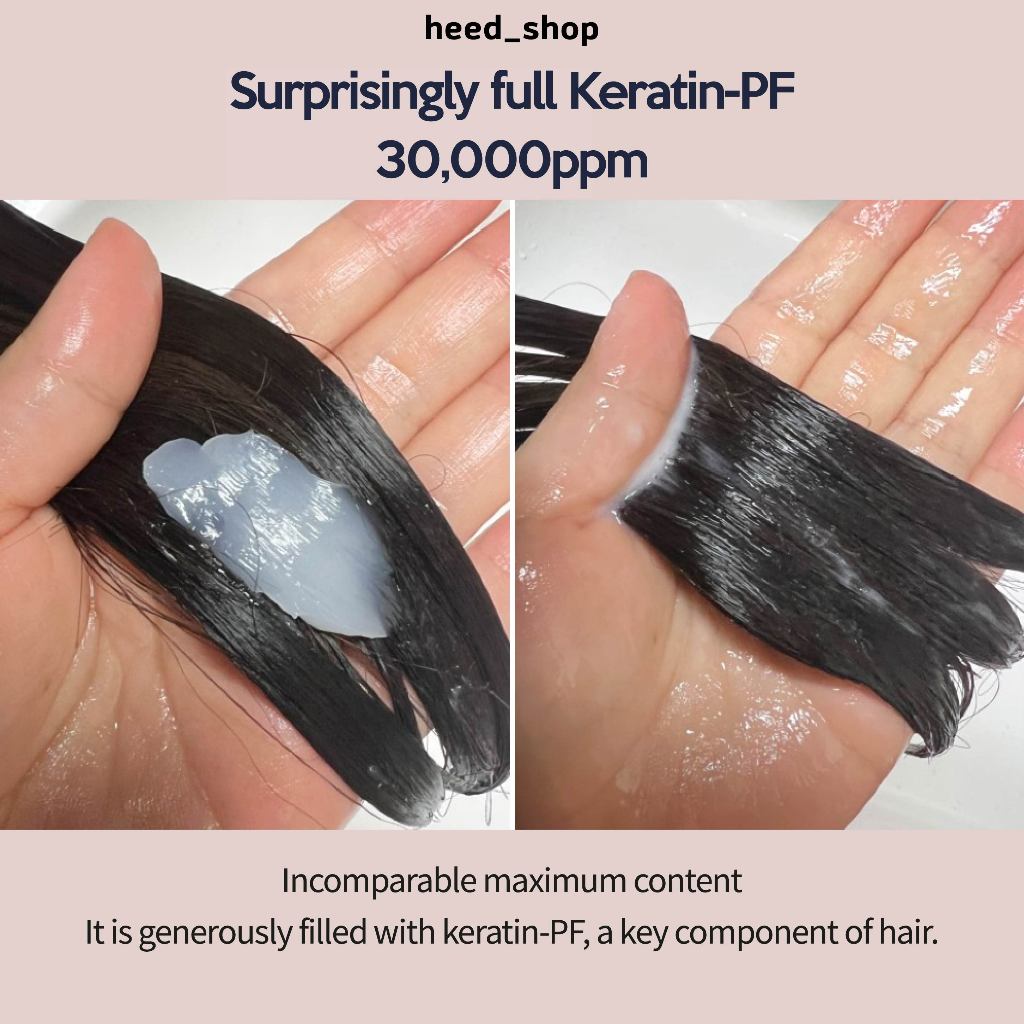 1. มาส์กปรับสภาพผมอย่างล้ำลึกผสม Keratin-PF 30,000ppm ที่ช่วยแยกและทำให้ผมนุ่มสลวยถูกทำลายด้วยกระบวนการทางเคมีการย้อมสีการจัดแต่งทรงผมด้วยความร้อน ฯลฯ โดยเติมหนังกำพร้าที่เสียหาย