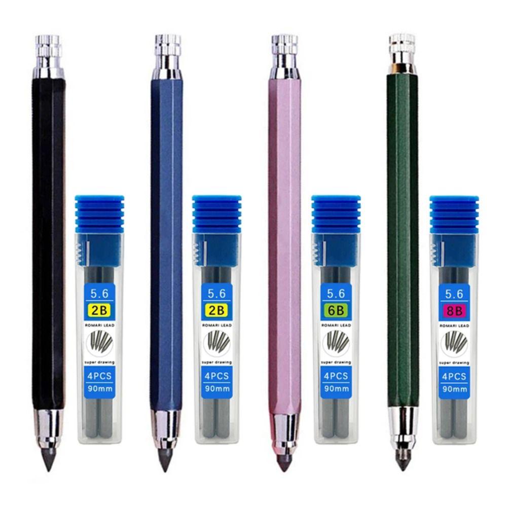 ดินสอกดเครื่องมือวาดภาพดินสออัตโนมัติภาพวาดศิลปะเครื่องเขียนร่างการ์ตูนการเขียน 5.6 มม. 2B / 4B / 6B / 8B ดินสอเติมโลหะอุปกรณ์สำนักงานโรงเรียน