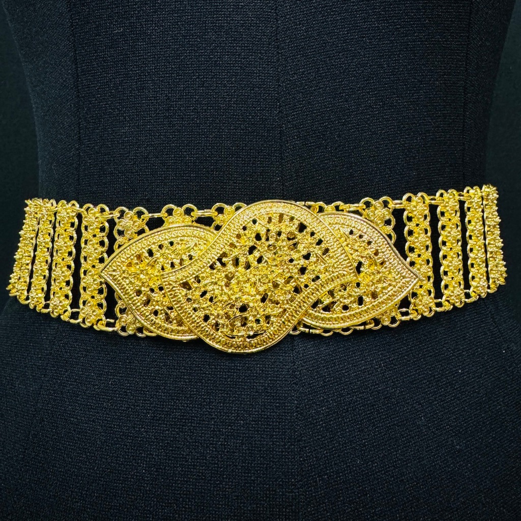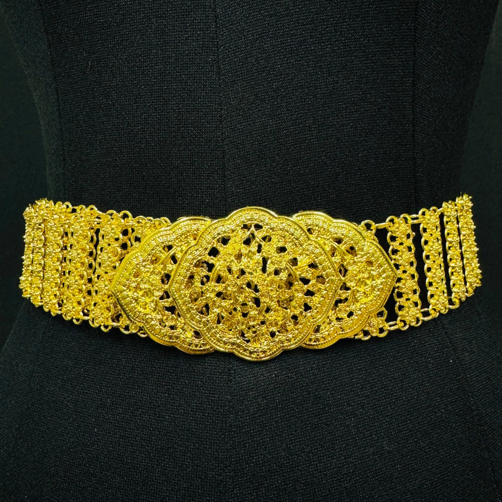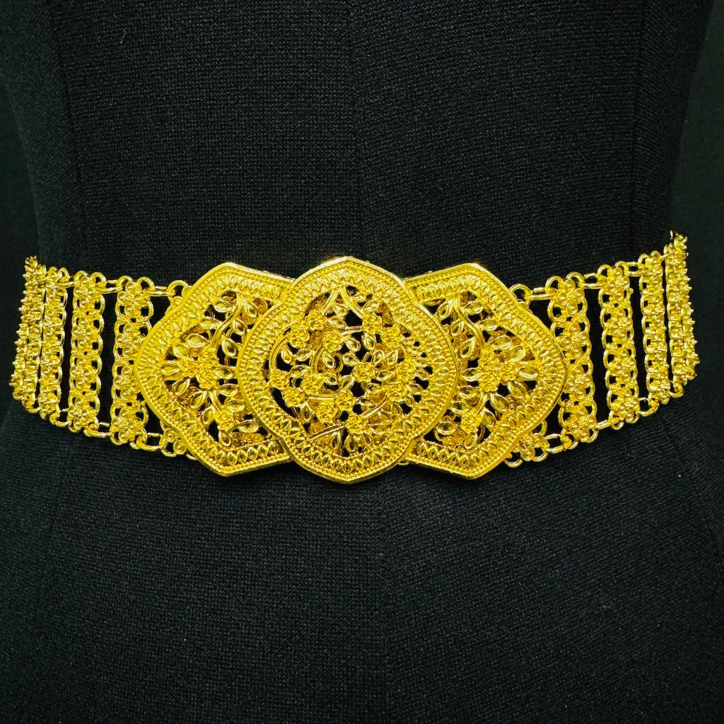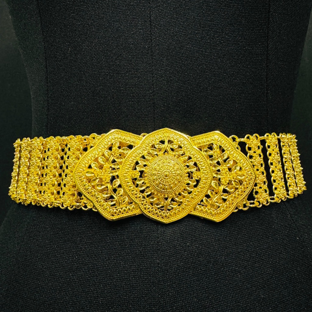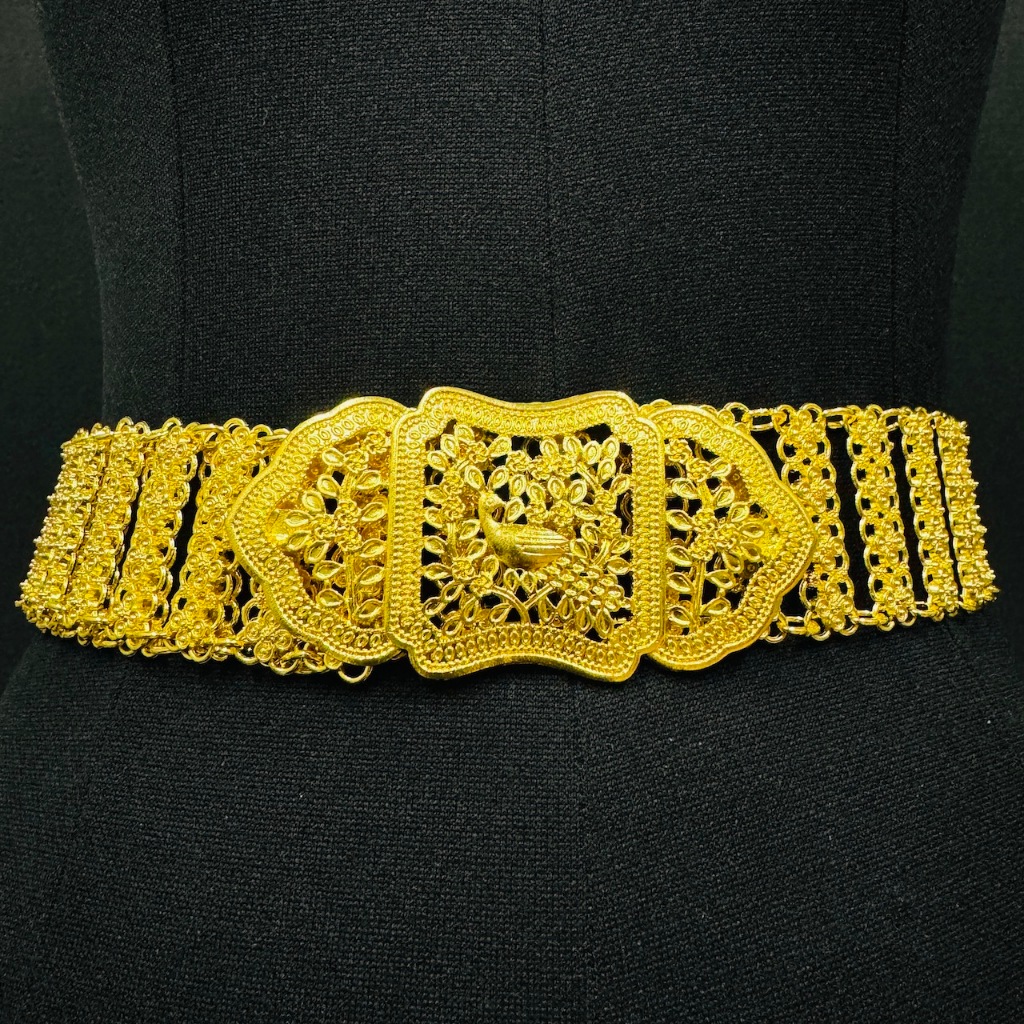 Vintage jewelry เข็มขัด อีสานชุดล้านนาไทหัวเข็มขัดสีดำสีทอง เอว 40