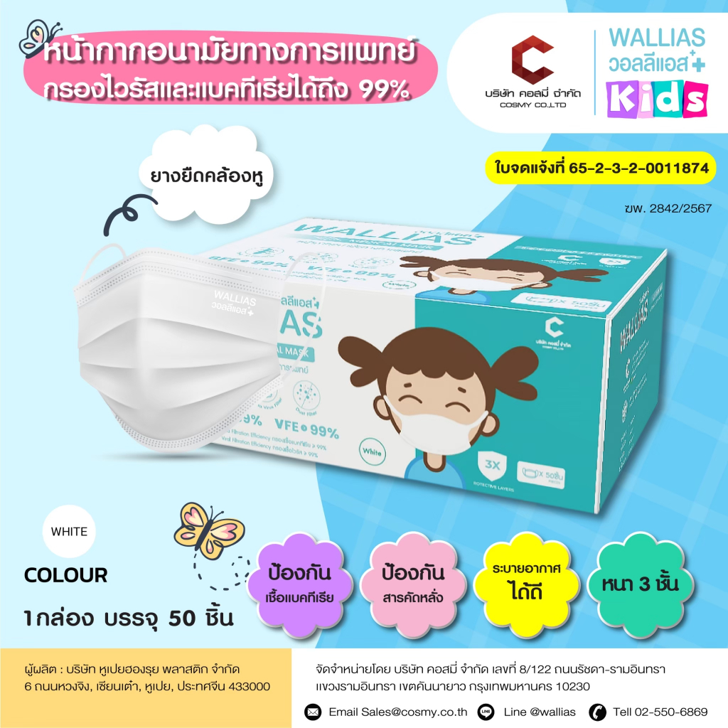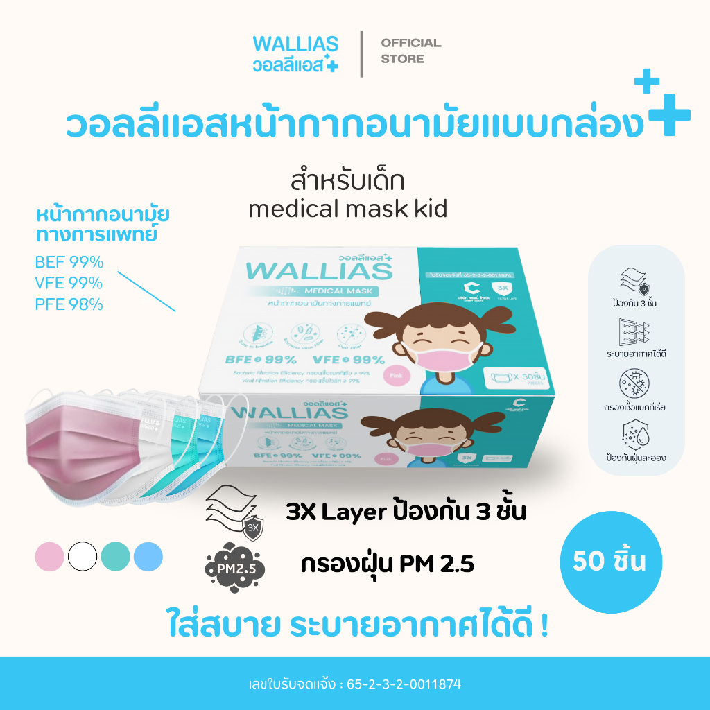 Medical Mask KID ยี่ห้อ Wallias แบบ 1กล่อง 2กล่อง 3กล่อง
