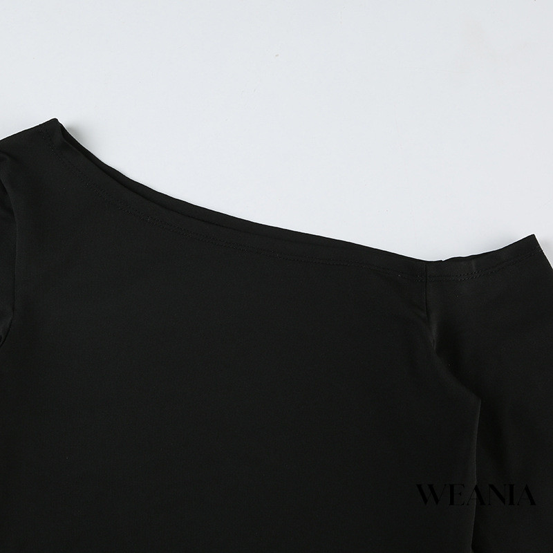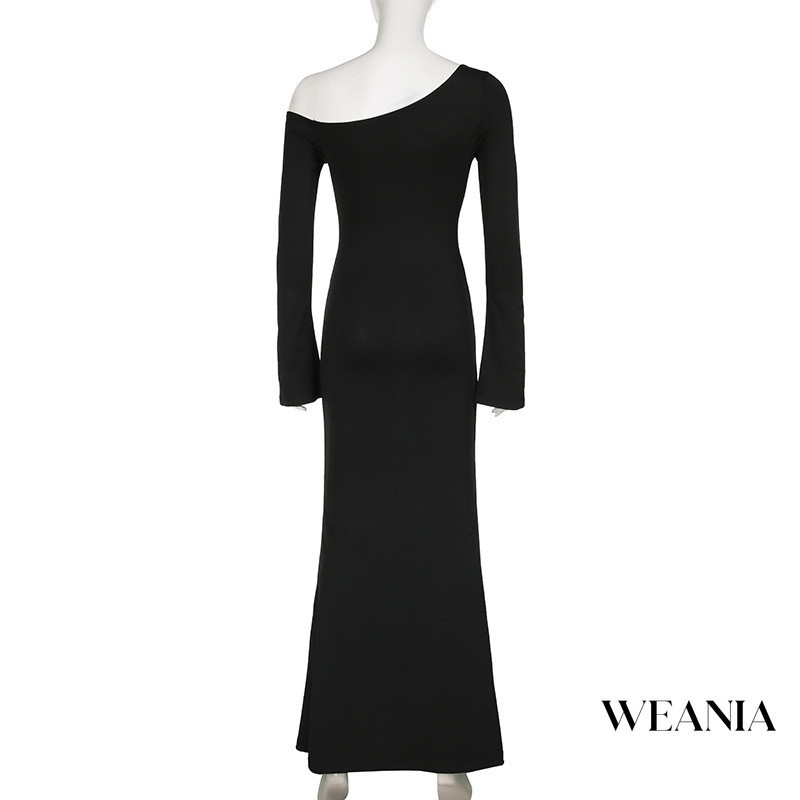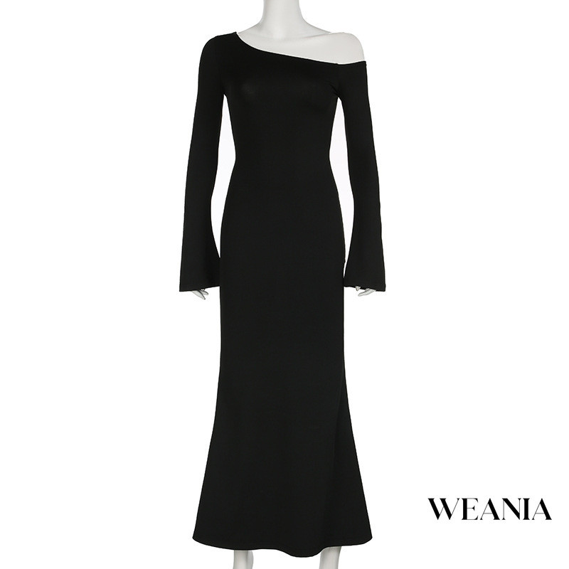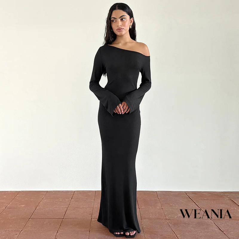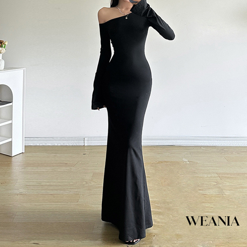 Weania ชุดเดรสเซ็กซี่แขนยาวไหล่เอียง