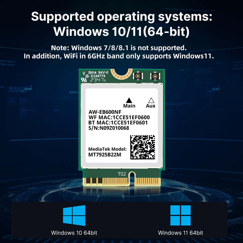 ระบบปฏิบัติการที่รองรับ: Windows 10/11 (64 บิต) และ Linux Openwrt (เราไม่มีการสนับสนุนระบบ Linux คุณควรทราบเมื่อต้องการใช้การ์ดเป็นคำสำหรับระบบ Linux)รองรับ Win 7/8