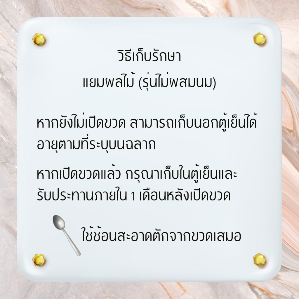 *ใช้ช้อนสะอาดในการตักสินค้าในขวดเสมอ ห้ามใช้ช้อนที่เปื้อนเศษขนมปังตักในขวดซ้ำ