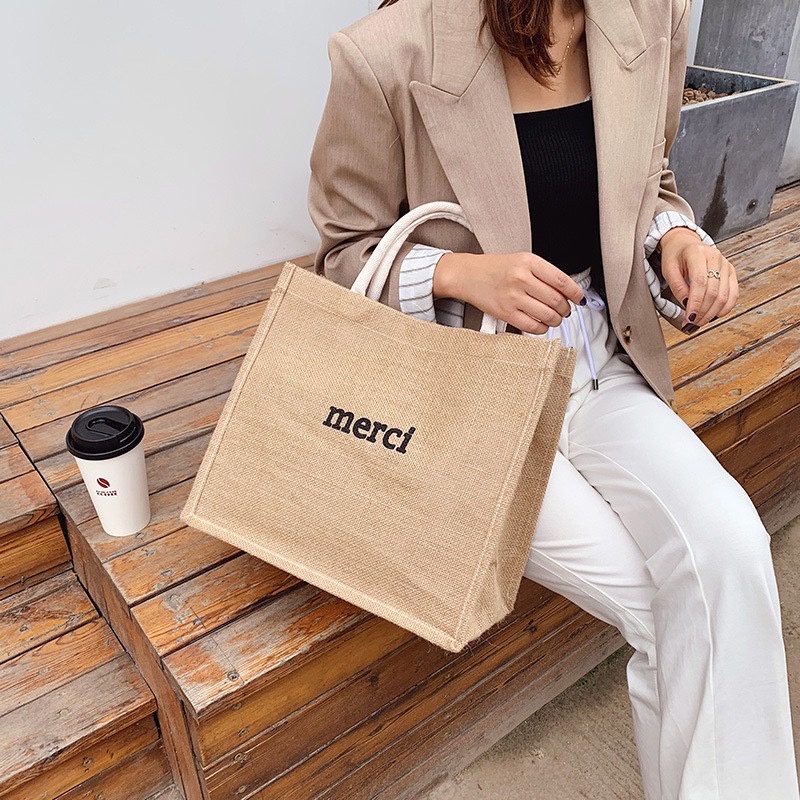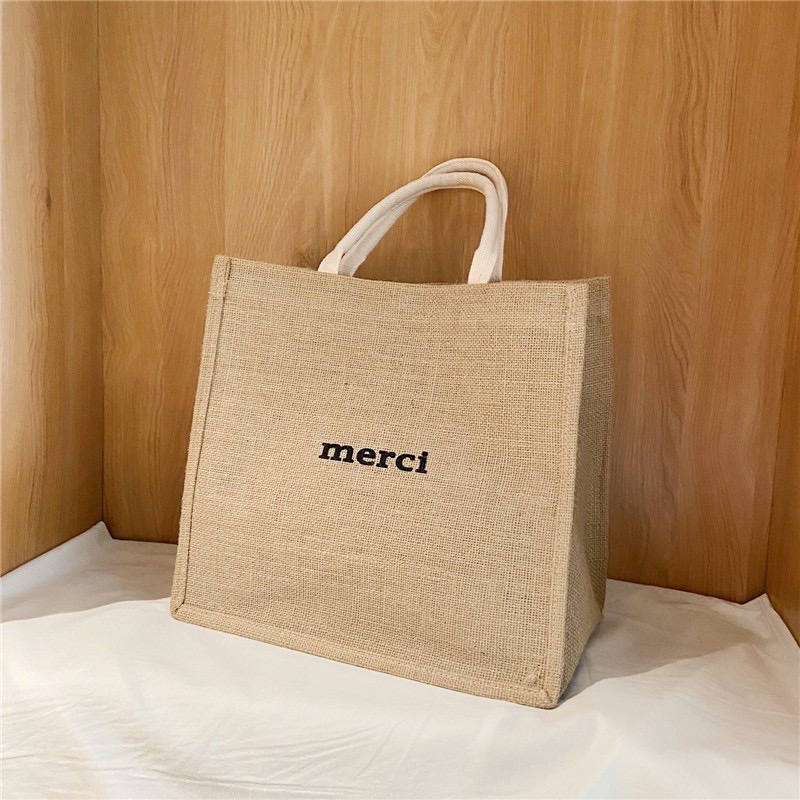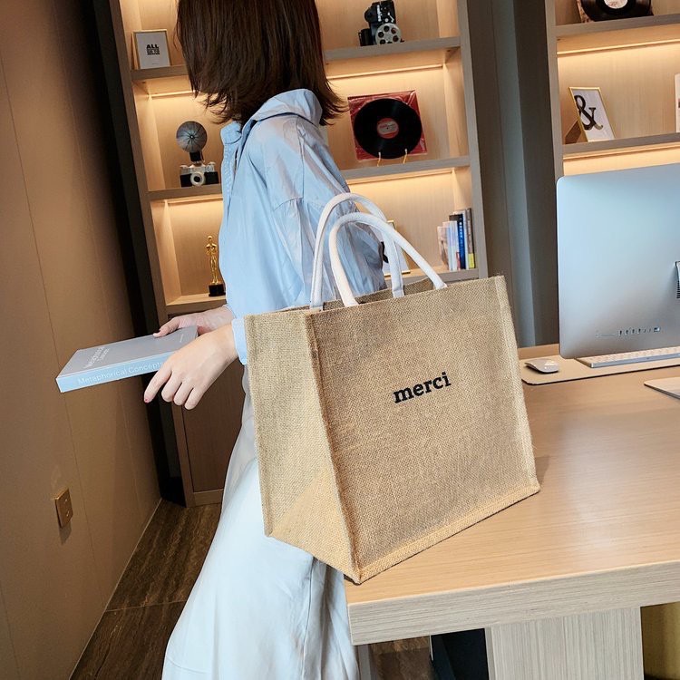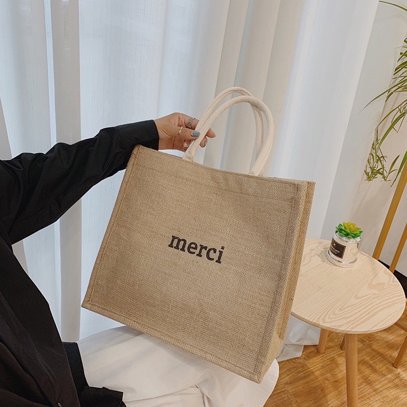 รายละเอียดสินค้า : (YM1321) กระเป๋า merci กระเป๋าช้อปปิ้ง กระเป๋าผ้ากระสอบ ใบใหญ่ กระเป๋าไปทะเล กระเป๋าmerci