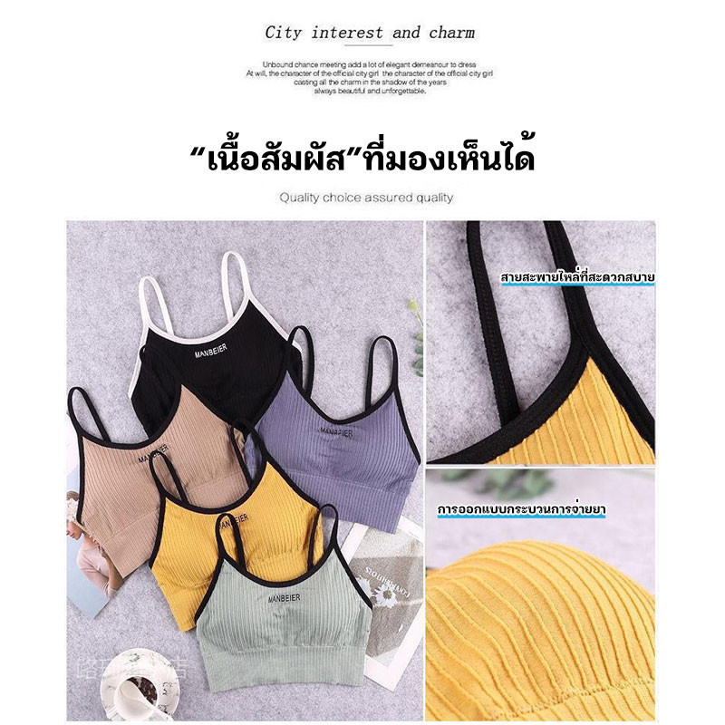 บราสายเดี่ยว ครอป แบบสวม ผ้าร่อง