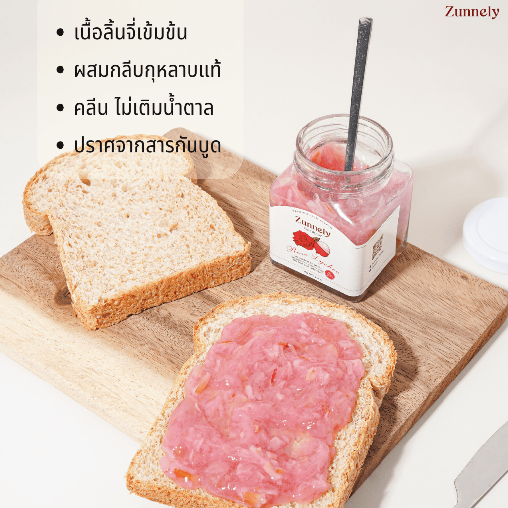 สัมผัสความหอมของกุหลาบออร์แกนิค ผสมผสานกับรสชาติเปรี้ยวอมหวานของลิ้นจี่ รสชาติกลมกล่อม สดชื่น ทานง่าย เหมาะสำหรับทาขนมปัง ทานคู่กับโยเกิร์ต หรือใช้ทำเครื่องดื่ม วัตถุดิบธรรมชาติ 100% ไม่เติมน้ำตาลและสารกันบูด